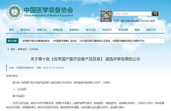 2024年7月30日,由中國(guó)醫(yī)學(xué)裝備協(xié)會(huì)組織的第十批《優(yōu)秀國(guó)產(chǎn)醫(yī)療設(shè)備產(chǎn)品目錄》遴選評(píng)審工作已完成,評(píng)審結(jié)果開放公示。由南京科進(jìn)實(shí)業(yè)有限公司自主研發(fā)生產(chǎn)的動(dòng)脈硬化檢測(cè)儀、人體成分分析儀全系產(chǎn)品成功入選!