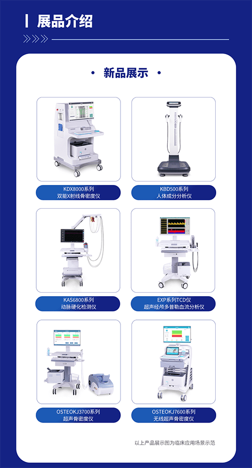 展會現(xiàn)場超聲經(jīng)顱多普勒血流分析儀、超聲骨密度儀、無線超聲骨密度儀、雙能X射線骨密度儀、動脈硬化檢測儀、人體成分分析儀等產(chǎn)品盡皆亮相,歡迎蒞臨現(xiàn)場參觀體驗(yàn)。